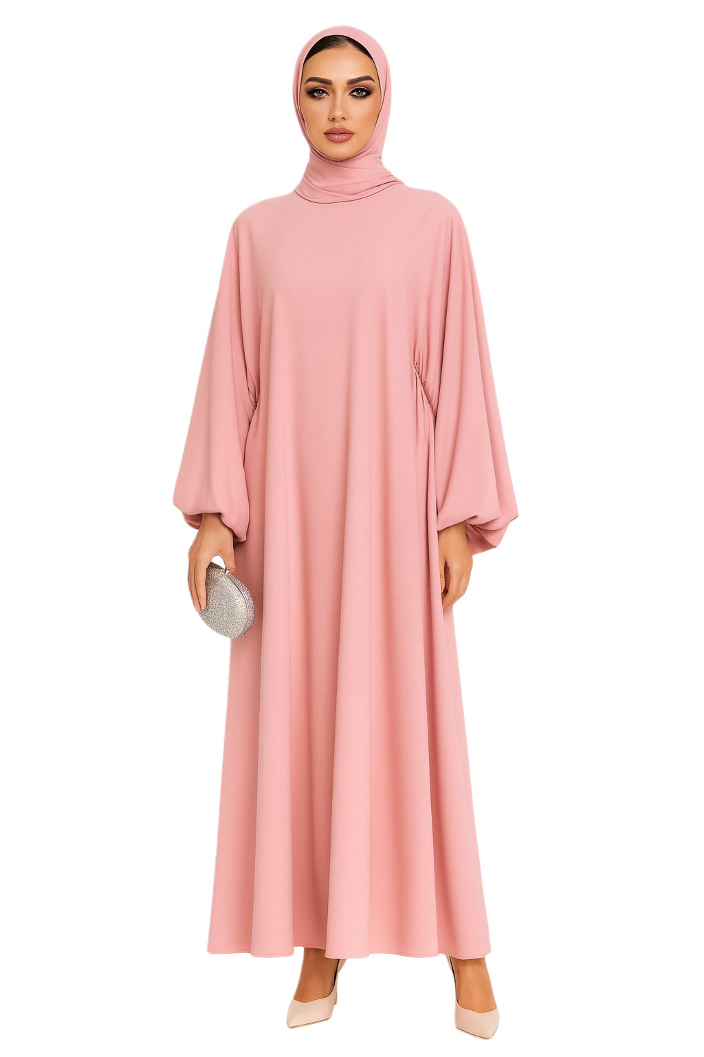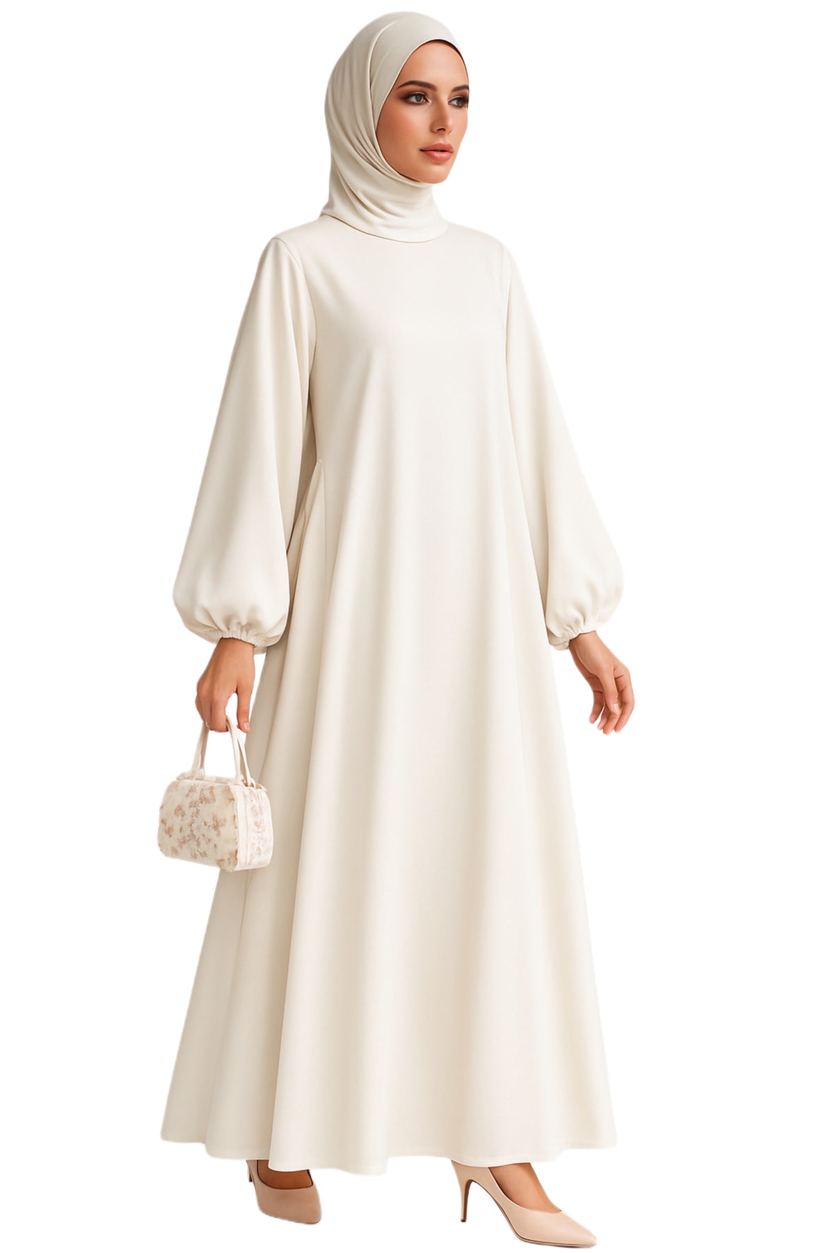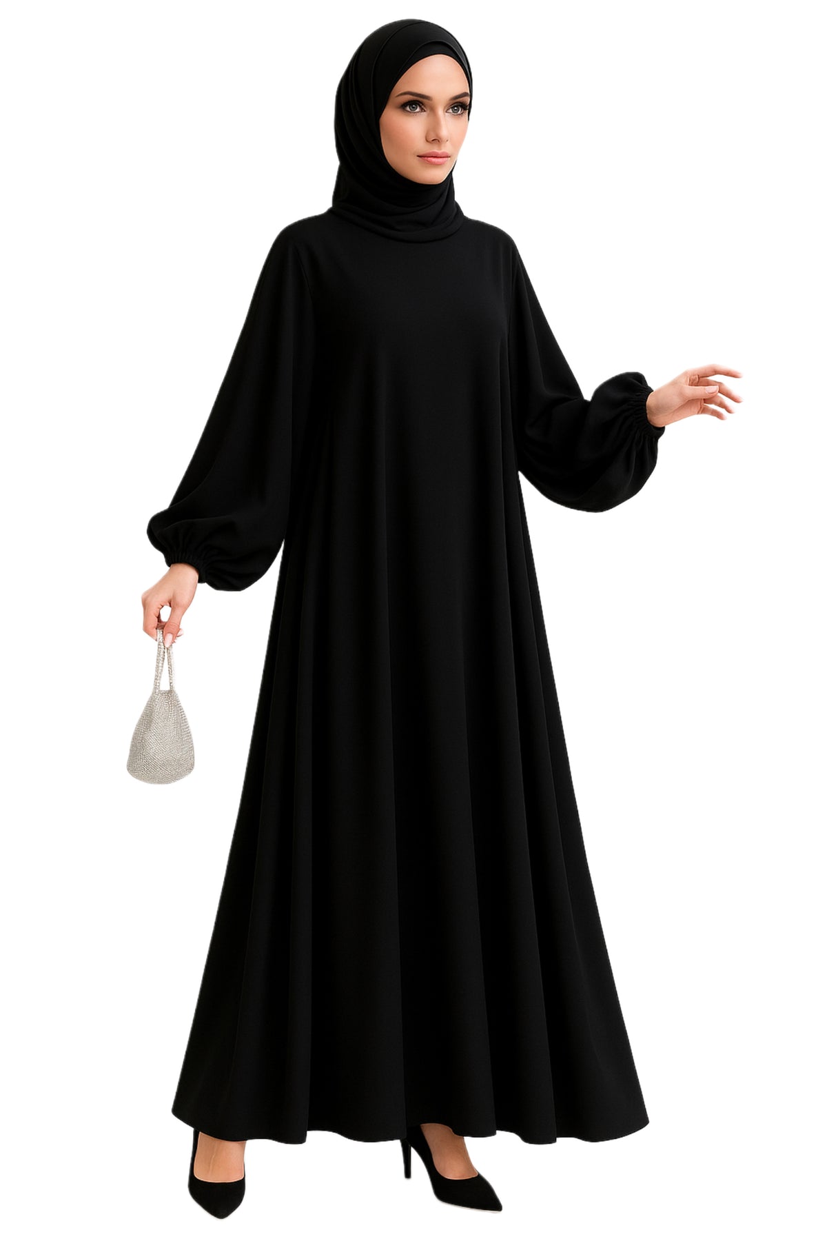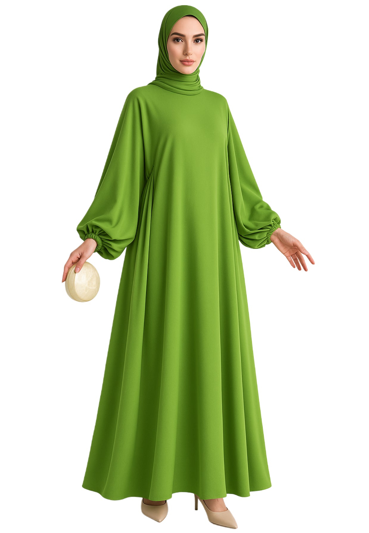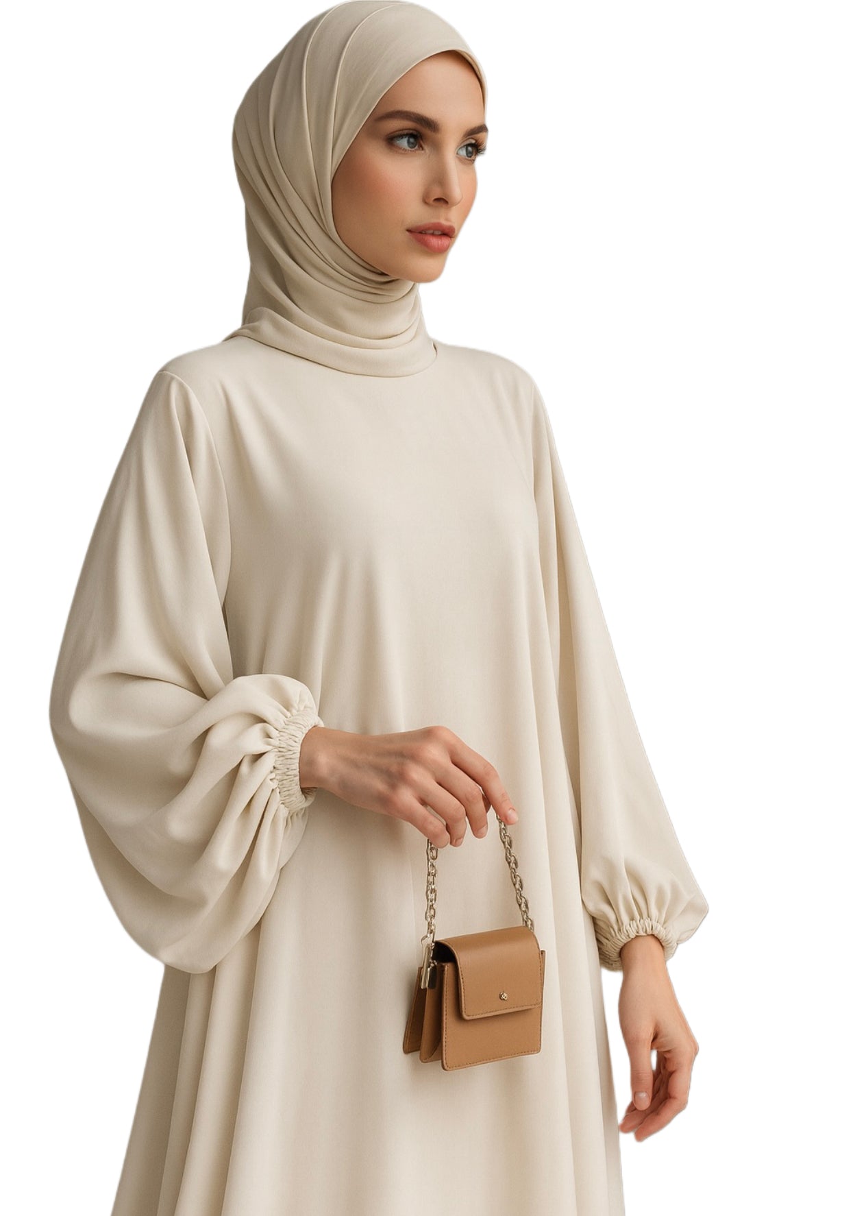 The Galile Dress is a timeless expression of elegance, crafted in premium lightweight crepe with a flowing silhouette and refined tailoring. Featuring gathered sleeves and impeccable stitching, it blends modesty with sophistication for both everyday wear and special occasions. Available in White, Green, Blue, Pink, and Black, it transitions effortlessly from day to evening with grace.